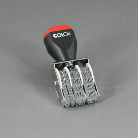 Datostempel fra Colop. Manuelt datostempel til bruk med stempelpute. Flere størrelser.