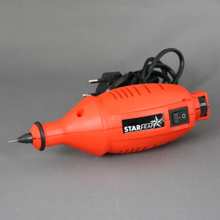Elektrisk merkepenn med funksjonelt design og robust konstruksjon. Den gir mange muligheter for merking og dekorering. Ergonomisk form og god vektfordeling gir utmerkede holde egenskaper. Graveringen. som er dyptgående og har lang levetid, utføres enkelt, uten anstrengelse, på alle materialer inkludert 65HRc herdet stål.