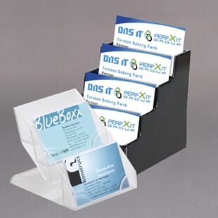 I vårt store sortiment finnes også visittkortholdere for vertikale og horisontale kort. Noen varianter av disse er også i sort akryl.