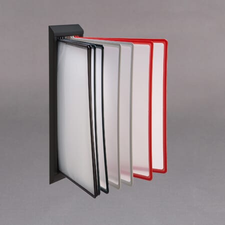 Arkivmappe stativ for vegg. inkludert 10 stk sorte mapper i A4 størrelse. Kan skrus rett på vegg, eller også monteres på en multistand. Inkludert skruer og plugger.