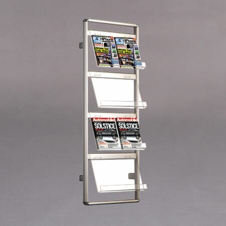 Brosjyrestativ i aluminium for vegg til 8 x A4 brosjyrer