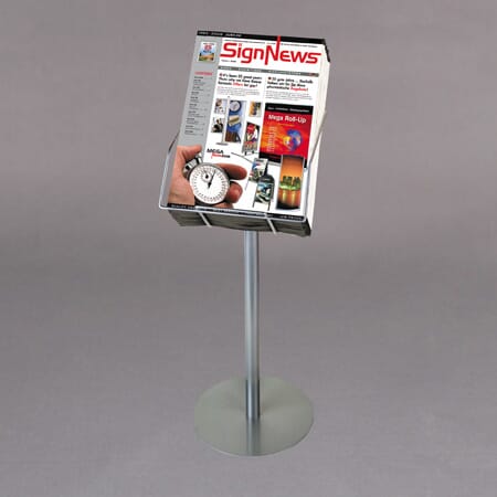 Utmerket til tabloid aviser eller brosjyrer. En hylle.