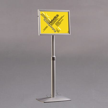 Infostativ i aluminium med kraftig LED lys. 25mm snap ramme i A3 størrelse. Justerbar høyde og valgfri innstilling - vertikal eller horisontal. skrå eller rett.