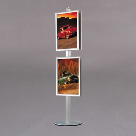 Dobbeltsidig multistand med ramme på begge sider 50 x 70cm. Elegant og stødig stativ som kan kombineres med hyller eller flere rammer.