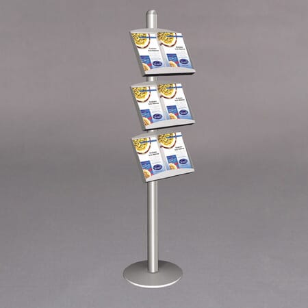 Enkeltsidig multistand med 3 hyller. Plass til 6 x A4 eller 3 x A3. Elegant og stødig stativ.