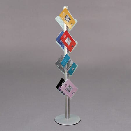 8 x A4 akryl lommer skrå. Elegant og meget stødig stativ.