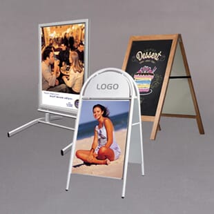 Gatebukker – flytt markedsføringen ut i det fri med iøyefallende gateskilt. Våre topp designede A-skilter kaller på oppmerksomhet – og får det!! Gatebukk er handy, billig og meget effektiv reklame. Vi har Norges største største utvalg av billige kvalitets gatebukker. Som blikkfang er gatebukker fra SAM helt uovertrufne. Bestill ditt nye gateskilt allerede i dag. Noen varianter har også logoplate med plass til folietekst med din profilering/ logo. Vi lager både folien og printer også plakatbudskapet om du ønsker det
