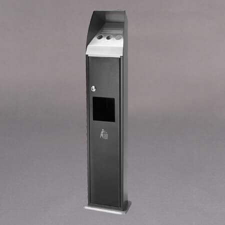 Askebeger i børstet stål og pent design til montering på vegg, pole stand eller multistand. Utført i galvanisert stål med front i børstet rustfritt stål. Beholderen med lås og nøkler og er lett å tømme.