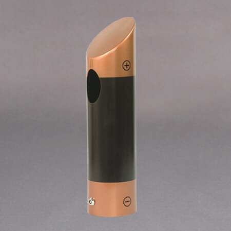 Batteri dispenser og returpunkt for brukte batterier som ikke må kastes i ordinær søppel. Kan stilles på et bord eller monteres på vegg. Rask og enkel tømming. Låsbart. Leveres med veggbeslag. skruer og plugger.