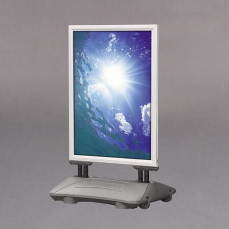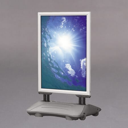 Wind line gatebukk med fot i plast. Kan fylles med vann (husk frostvæske) eller sand. 40mm klikk klakk ramme. 100% rustfri. Vannsikker.