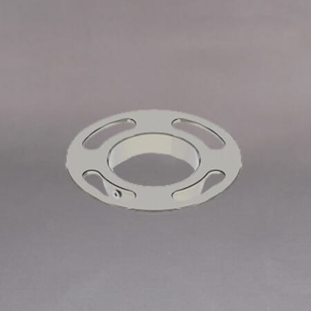 Rundt beslag/ bunnfeste for bannerstang. Brukes ved montering av banner på køordner systemet istedenfor tau eller bånd.