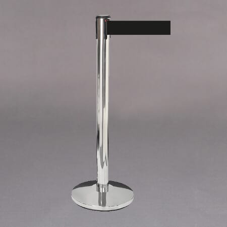 1 stk sølvfarget stolpe i stål 91cm høy til køordnersystem/ avsperringsystem. Den tunge foten på Ø32cm gjør den meget stødig. 3 meter SORT bånd integrert i stolpen. Beslag til vegg er tilbehør.