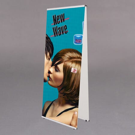 Dobbeltsidig. fleksibel lettvektskonstruksjon i sølv eloksert aluminium. Ved hjelp av Banner line klemprofilen i topp og bunn kan bannerne lett skiftes ut. Leveres i grå pose. Kraftig sort transportbag kan kjøpes som til behør. Vi kan også produsere bannerne med ditt budskap mot ett tillegg i prisen.