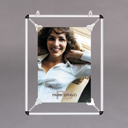 Lett ramme som strekker plakaten fra 4 hjørner. Plakaten festes med plastklemmer. som ikke ødelegger plakatpapiret.