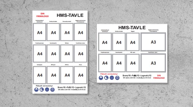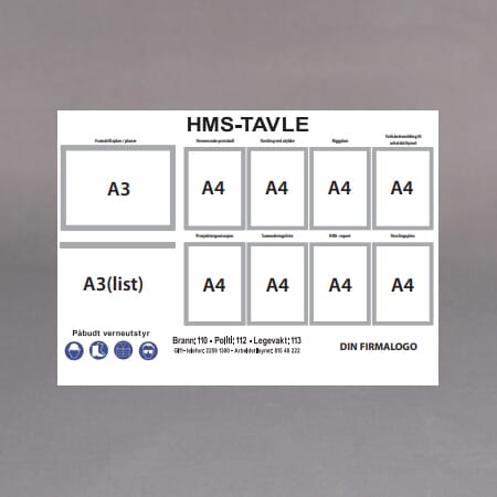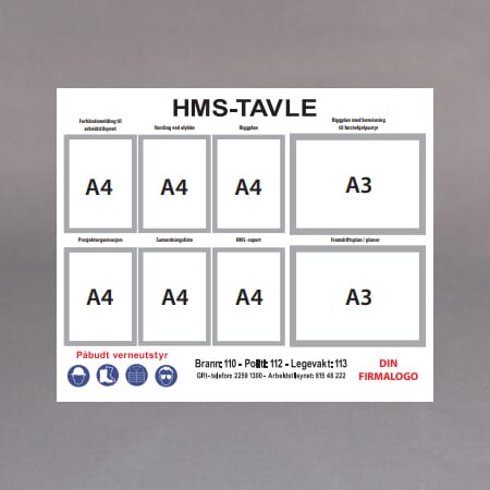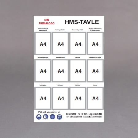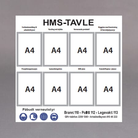 HMS-Tavle. Brukes til å dokumentere Helse. miljø og sikkerhetsarbeidet på en bygge og eller anleggsplass. Vi leverer tavler spesialtilpasset bedriftens behov.
