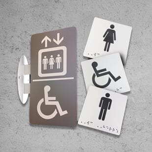 - Skilt med blindeskrift og taktile for svaksynte kan innmonteres i Mirtec profilene