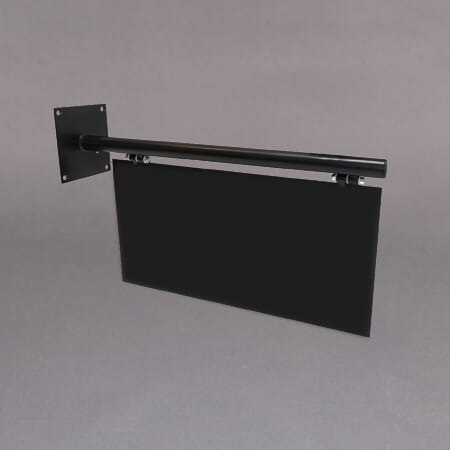Utført i pulverlakkert stålrør. samt skiltplate i 55 x 30 cm. Galvanisert veggbeslag. Leveres med skruer og plugger. Leveres uten tekst og logo.