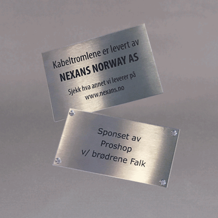 Syrefaste lasermerkede skilt i forskjellige størrelser. Mange bruksområder da de er meget slitesterke . Tåler både ferskvann. saltvann og andre tøffe omgivelser.