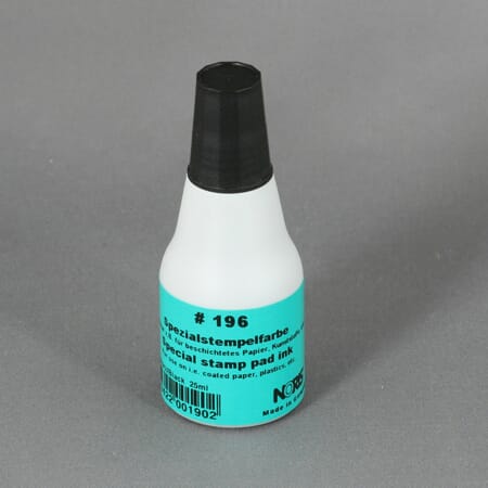 Noris G-196 stempelfarge er en vannfast, værbestandig, hurtigtørkende stempelfarge med god holdbarhet, som brukes både til industrimerking og stempling av krevende materialer der vanlig stempelblekk ikke sitter. Egner seg godt for stempling av plast, metall og en rekke andre krevende materialer.