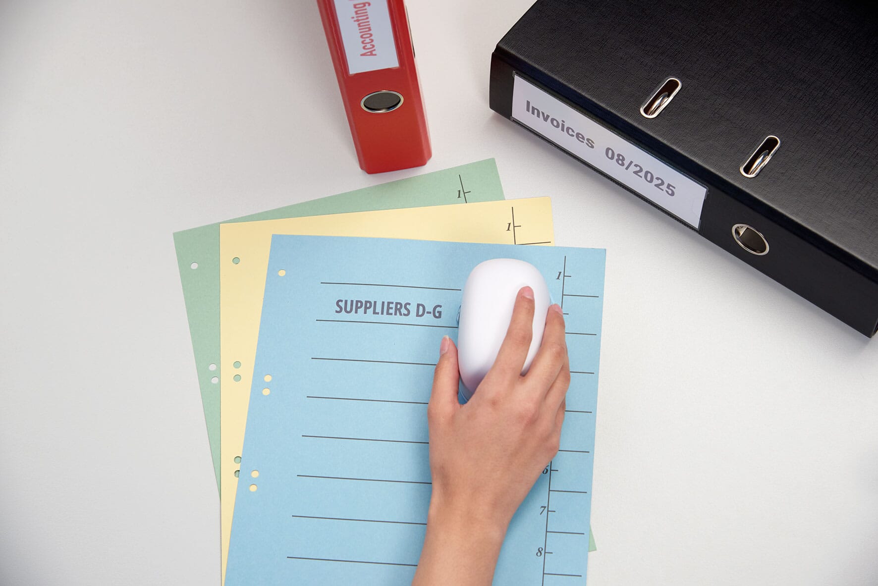 Colop e-mark er et innovativt og mobilt alternativ til tradisjonelle stempler. Med denne smarte enheten kan du lage og skrive ut fargede avtrykk direkte fra mobil, nettbrett eller PC – når og hvor du vil.